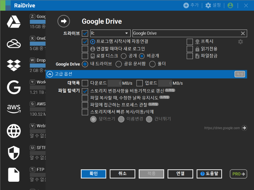 - 자동 연결: 컴퓨터 시작 시 자동으로 클라우드 드라이브를 연결하도록 설정할 수 있습니다.